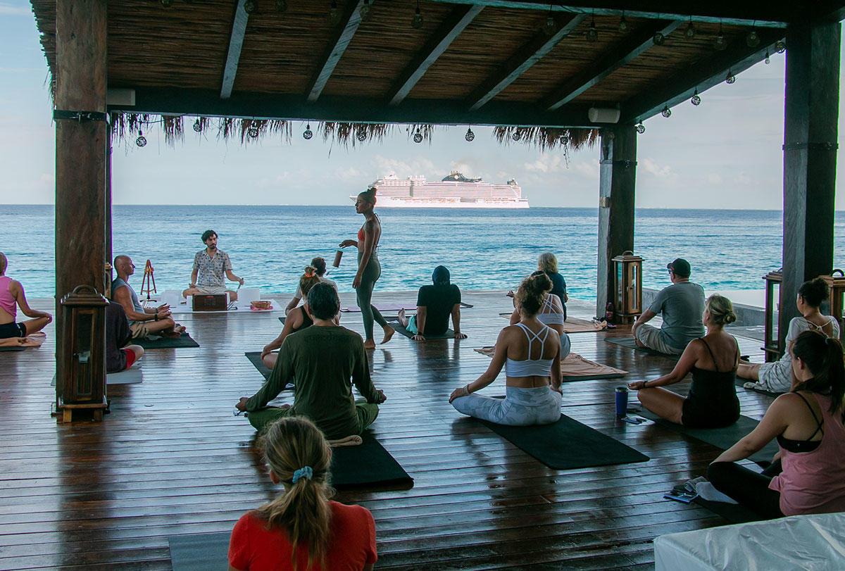 Cada viaje es una celebración y la invitación es a que te dejes envolver por la magia del yoga frente al mar, Ecstatic Cacao Dance y la música lounge en un entorno único.