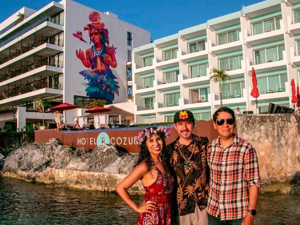 El miércoles 3 de mayo de 2023 a las 18:00 hrs., en Hotel B Cozumel, los talentosos hermanos originarios de Guadalajara, Carlos Gómez y Adry del Rocío, conocidos por sus murales urbanos en más de 20 países, plasmaron la magia de Ixchel, la diosa de la prosperidad y la abundancia venerada en la isla de Cozumel.